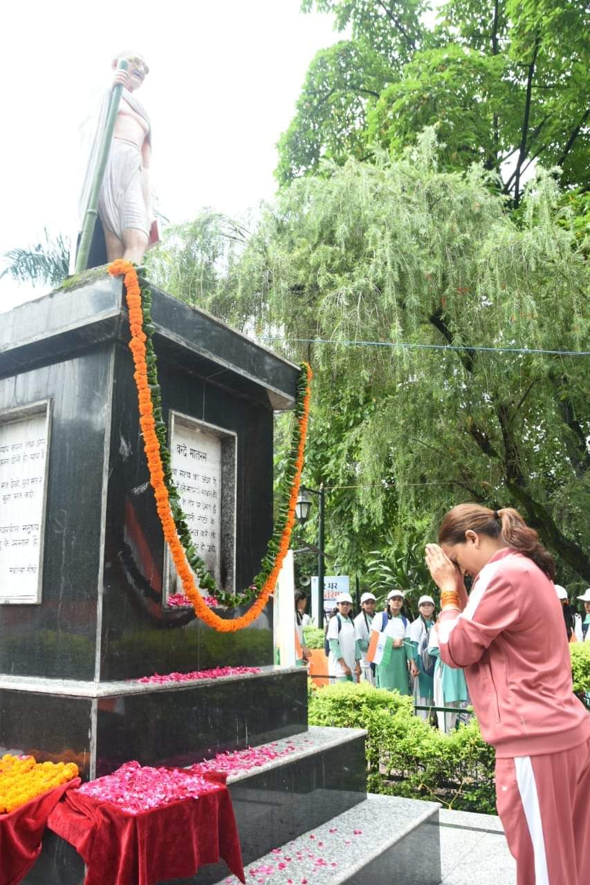 देहरादून :कैबिनेट मंत्री रेखा आर्या ने आज प्रधानमंत्री नरेन्द्र मोदी के आह्वाहन पर ‘हर घर तिरंगा अभियान” के तहत देहरादून के गांधी पार्क से परेड ग्राउंड तक भव्य तिंरगा यात्रा का शुभारंभ किया।यात्रा के शुभारंभ से पूर्व उन्होंने महात्मा गांधी और शहीदों की प्रतिमा पर पुष्पांजलि और श्रद्धासुमन अर्पित किए।तिरंगा यात्रा में खेल व युवा कल्याण विभाग के अधिकारीगण,पीआरडी स्वयंसेवक और स्कूली बच्चों ने प्रतिभाग किया।इस दौरान यात्रा में शामिल लोगों ने भारत माता की जय का उद्घोष कर माहौल को देशभक्ति के रंग में रंग दिया।